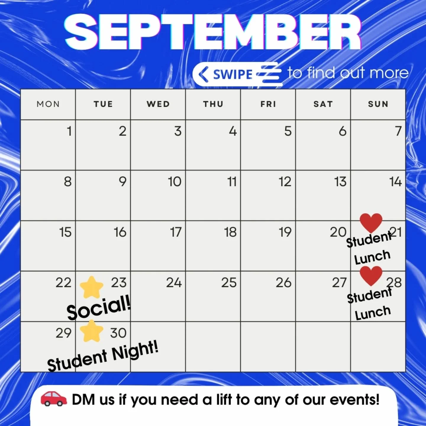 Our Socials are the best way to get connected into the community and make strong friendships. We always have exciting plans throughout the term which you can get involved in!
