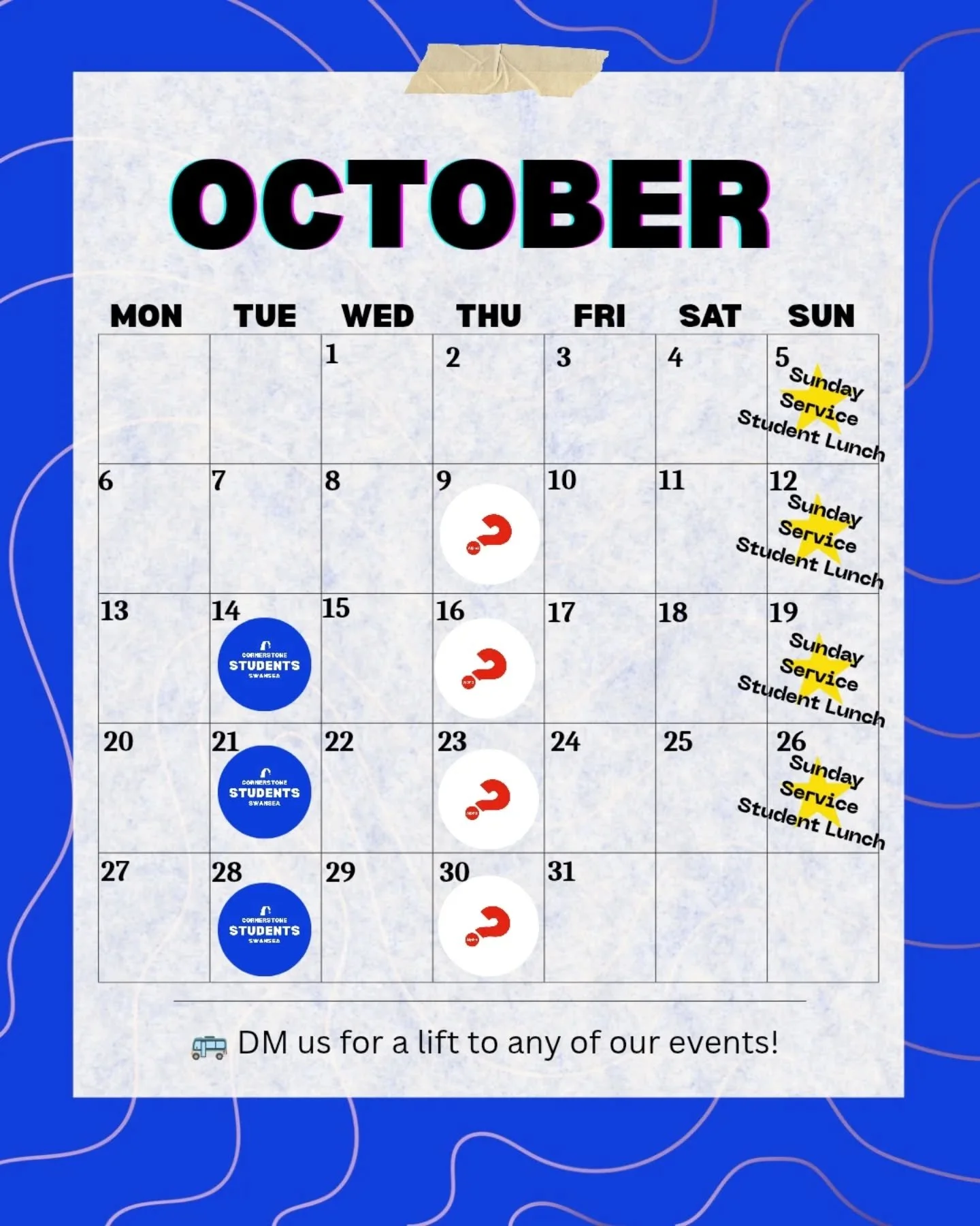 If you are new to Swansea, we’ve got you covered! We have a mini bus which will pick you up from the city centre and student villages which will bring you directly to church! Just DM/Email us for more information!